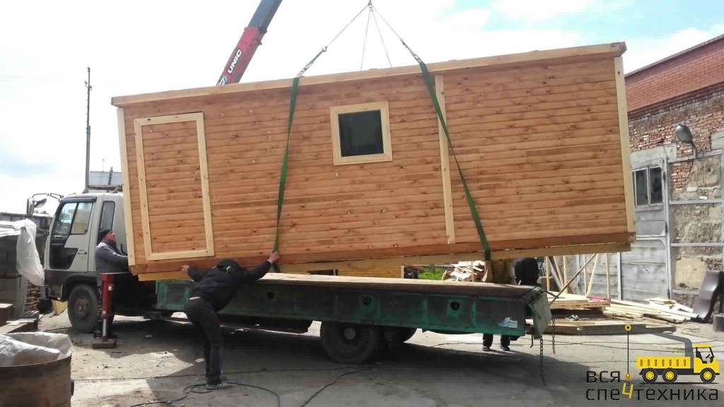 Способ перевозки, варианты упаковки и строповки  лучше согласовать с производителем бани. Заказать услуги лучше в компании «Вся Спецтехника», где в зависимости от рекомендаций выберут оптимальную технику, рассчитают наиболее удобный маршрут, предложат необходимую оснастку. Цена согласовывается сразу и зависит от сложности операции, необходимости получения разрешения, удаленности места доставки.
